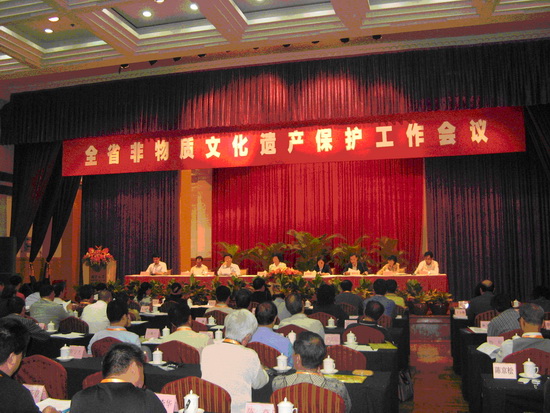 廣東省副省長雷于藍(lán)(主席臺(tái)左四)、省文化廳廳長方健宏(主席臺(tái)左三)、省委宣傳部副部長顧作義(主席臺(tái)右三)等領(lǐng)導(dǎo)出席會(huì)議并講話