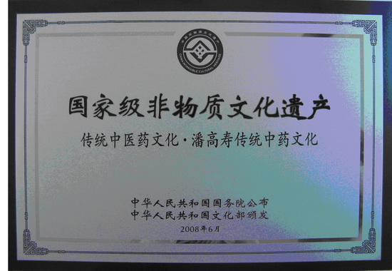“潘高壽傳統(tǒng)中藥文化”國家級(jí)非物質(zhì)文化遺產(chǎn)標(biāo)牌
