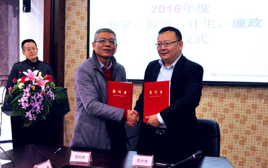 楊董和梁書記進行安全、綜治、計生簽約