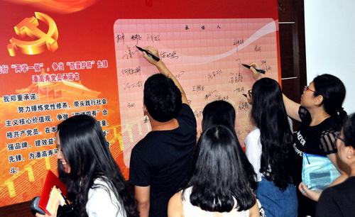 之后,黨委書記蘇廣豐講話,就如何實踐入黨誓言、為企業發展再立新功提出了要求,一是要堅持學習,推進“兩學一做”學習教育常態化制度化。二是堅持立足崗位做貢獻,“擼起袖子加油干”,切實發揮先鋒模范和帶頭作用,堅定不移做強做優做大潘高壽。三是堅持不忘初心跟黨走,做到“講黨性、有覺悟”,自覺同以習近平同志為核心的黨中央保持高度一致,積極發揮教育先鋒模范作用,迎接黨的十九大勝利召開。