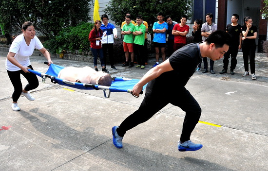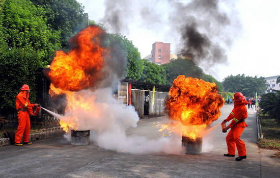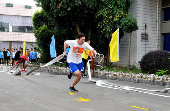 演練先由廣藥集團總經理助理陳偉平講話并宣告開始,而后,市安監局調研員朱華作總結講評。集團屬下26家企業200多名志愿消防隊員參演。各隊在“火災報警、水槍打靶、應急救護、火場逃生、油桶滅火”等五個項目的競逐中比接力、比速度。最終,由白云山總廠奪得頭獎……演練比出水平、賽出風格,也強化了全員安全意識,防患未然更深入人心。我司健兒良好的表現,也彰顯潘高壽人在新時期團結進取的精神風貌。