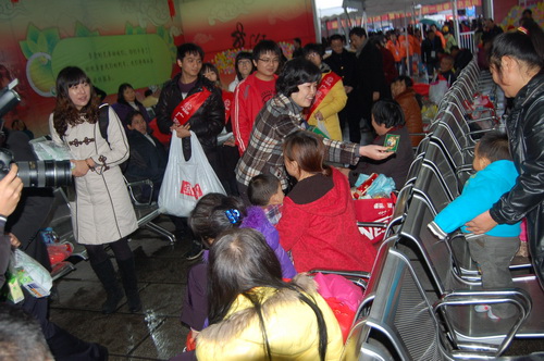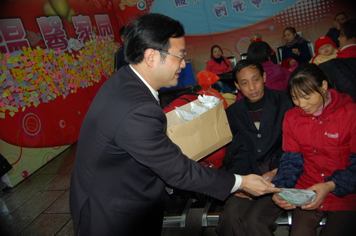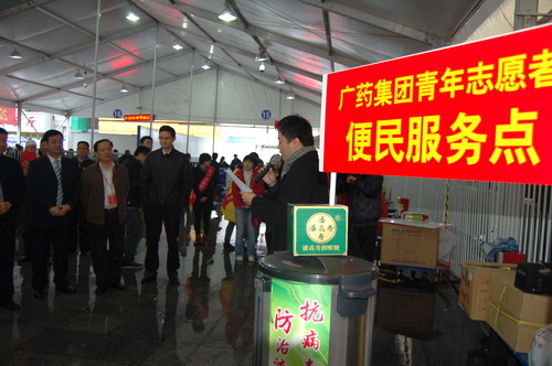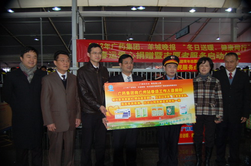 為了配合做好2012年春運工作,《羊城晚報》與廣藥集團共同在廣州火車站啟動了春運現(xiàn)場志愿者服務活動。元月15日上午,《羊城晚報》總編輯劉海陵等領導和白云山和黃中藥、潘高壽、王老吉、明興等企業(yè)領導等一行來到廣州火車站,針對車站工作人員在春運期間喊話多、休息少等狀況特別挑選了價值逾10萬元白云山板藍根、白云山?jīng)霾琛⑴烁邏蹪櫤硖恰⑼趵霞獩霾琛⑶彘_靈膠囊等廣藥集團司屬產(chǎn)品。這些急需藥品、飲料,受到車站領導和工作人員的熱烈歡迎。 我司黨委書記鄭楠率領潘高壽手牽手義工隊人員到現(xiàn)場參加活動,為有需要的旅客送去關懷和溫暖,潘高壽潤喉糖特別受到了人們的歡迎。 從15日—22日,廣藥集團每天將派出志愿者在車站廣場開展志愿服務,為有需要的旅客提供熱飲及其他協(xié)助。參加本次志愿行動的志愿者將達到100人。 資訊部 良戈 (戴梅、林沃亮 圖/文)