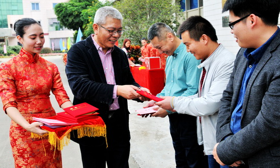 儀式上,紀委書記、工會主席張奇志宣讀了《關于表彰2016-2017年度潘高壽之星的決定》。公司領導向榮獲“生產之星”、“服務之星”、“營銷之星”、“科技質量之星”、“管理之星”和“外來服務之星”的30優秀員工頒獎,并號召全體員工弘揚工匠精神,以更加務實的態度、更加勤勉的作風,再創佳績。