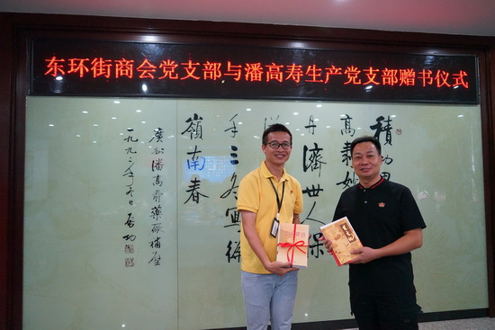 東環街商會黨支部與潘高壽生產黨支部還進行了互相贈書儀式。大家深有同感,黨建工作做好了能為企業良性發展提供堅強保障,今后要加交流共建,互助共贏。