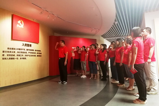 職能二支部組織黨員和部分團員代表一行23人來到赤崗街紅房子黨建基地,開展“不忘初心、牢記使命”主題黨日活動,推動主題教育往深里走、往心里走、往實里走。黨員們在黨委書記蘇廣豐的帶領下重溫入黨誓詞、逐字逐句讀黨章、認認真真學原著,聽蘇書記深情講述初心使命,認真思考如何把中國夢、強企夢同幸福美滿個人夢緊緊聯系起來,進一步堅守初心、勇擔使命,推動學習成效和工作成效。