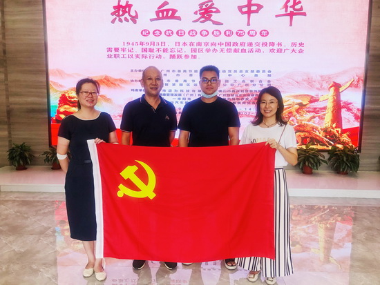 活動中,公司黨委委員、副總經理劉永忠等黨員、團員志愿者發揮先鋒模范作用,積極帶頭獻血,用實際行動踐行無私奉獻、友愛互助的精神。時值中國人民抗日戰爭勝利紀念日,“熱血愛中華”紀念抗日戰爭勝利75周年獻血活動由番禺節能科技園黨總支部及番禺區中心血站主辦。