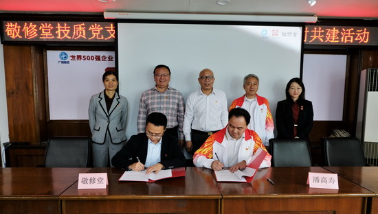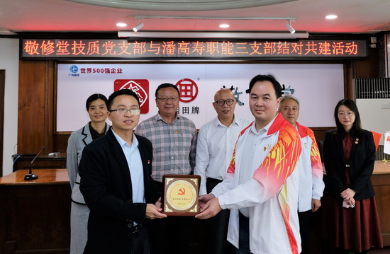 在雙方支部黨員的見證下,白云山潘高壽職能三支部與敬修堂技質黨支部鄭重完成了支部結對共建簽約儀式,并互授結對共建牌匾。